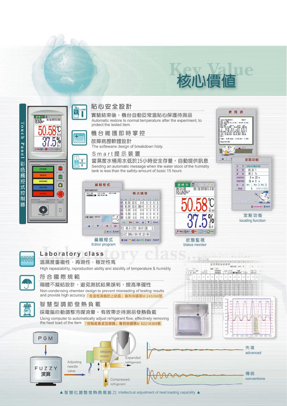 恒溫恒濕機(jī)的目的為模擬產(chǎn)品在氣候環(huán)境溫濕組合條件下(高低溫操作與儲(chǔ)存、溫度循環(huán)、高溫高濕、低溫低濕、結(jié)露試驗(yàn)…等),檢測產(chǎn)品本身的調(diào)節(jié)能力與特性是否改變。需符合國際性規(guī)范之要求(IEC、JIS、GB、MIL…)以達(dá)到國際間量測程序一致性(含測試步驟、條件、方法)避免認(rèn)知不同,并縮小測量不確定的因素范圍發(fā)生。