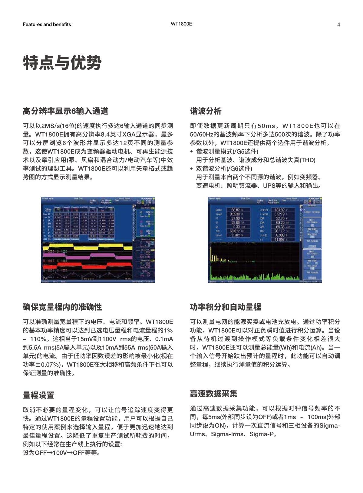 靈活 – WT1800E不但擁有最多6輸入通道、 寬量程顯示和分析功能, 還可以和電腦相連接,能在功率效率和諧波分析領(lǐng)域?yàn)榭蛻籼峁V泛的測(cè)量解決方案。