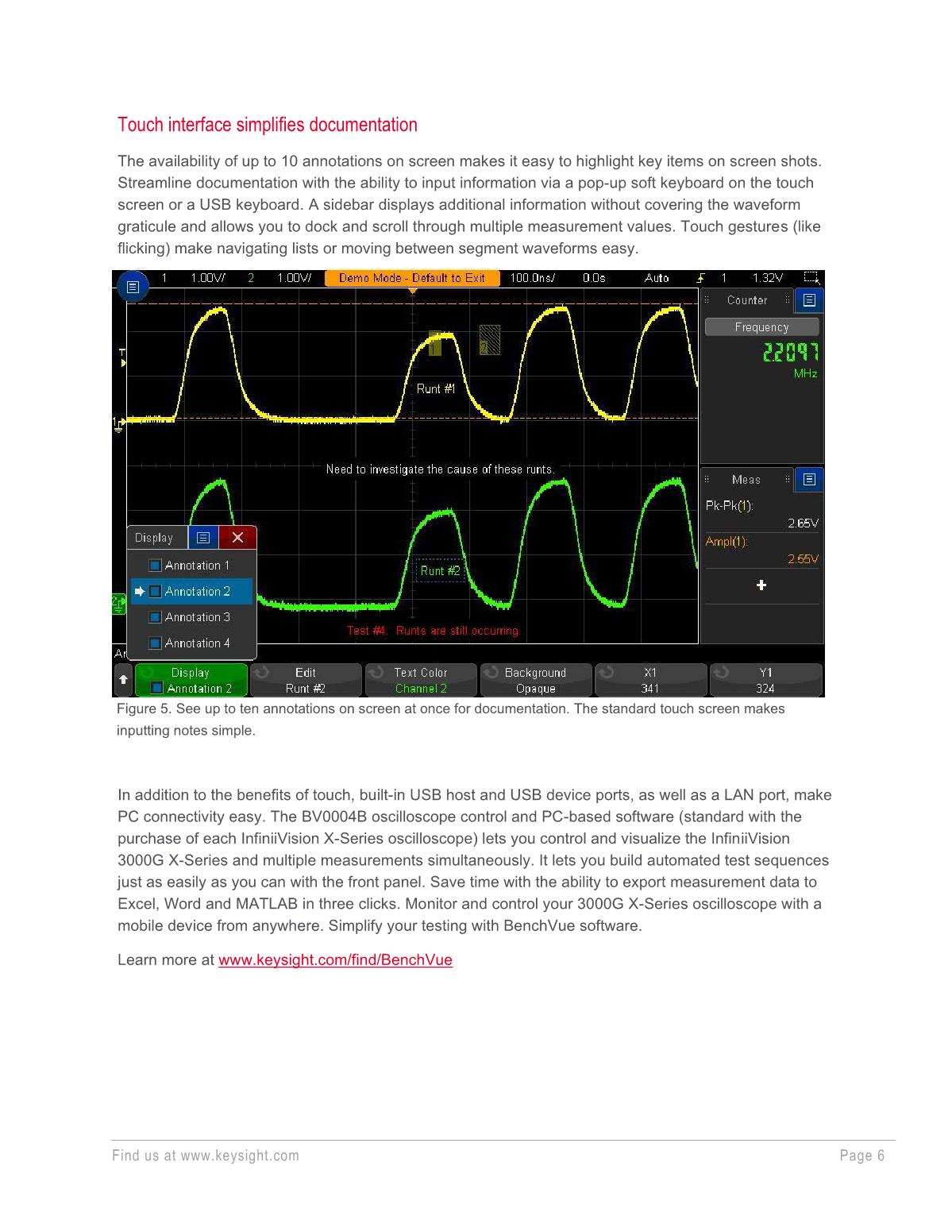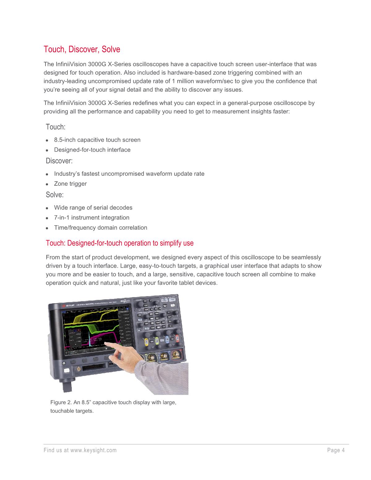 Keysight 3000G X 系列示波器支持您快速、輕松地執(zhí)行可靠的測量。 3000G X 系列將我們的一些高端技術(shù)帶到入門級示波器上,可以提供帶寬覆蓋 100 MHz 到 1 GHz 的 20 種型號,并配有直觀的 8.5 英寸電容式觸摸屏用戶界面。 憑借每秒 1,000,000 個波形的超快波形捕獲率,您能夠捕獲難以捉摸的毛刺和異常。 通過結(jié)合使用自動化軟件、波形和測量直方圖以及區(qū)域觸摸觸發(fā)功能,就可以一步輕松完成先進的測量——您只需用手指在屏幕上畫個方框即可實現(xiàn)。