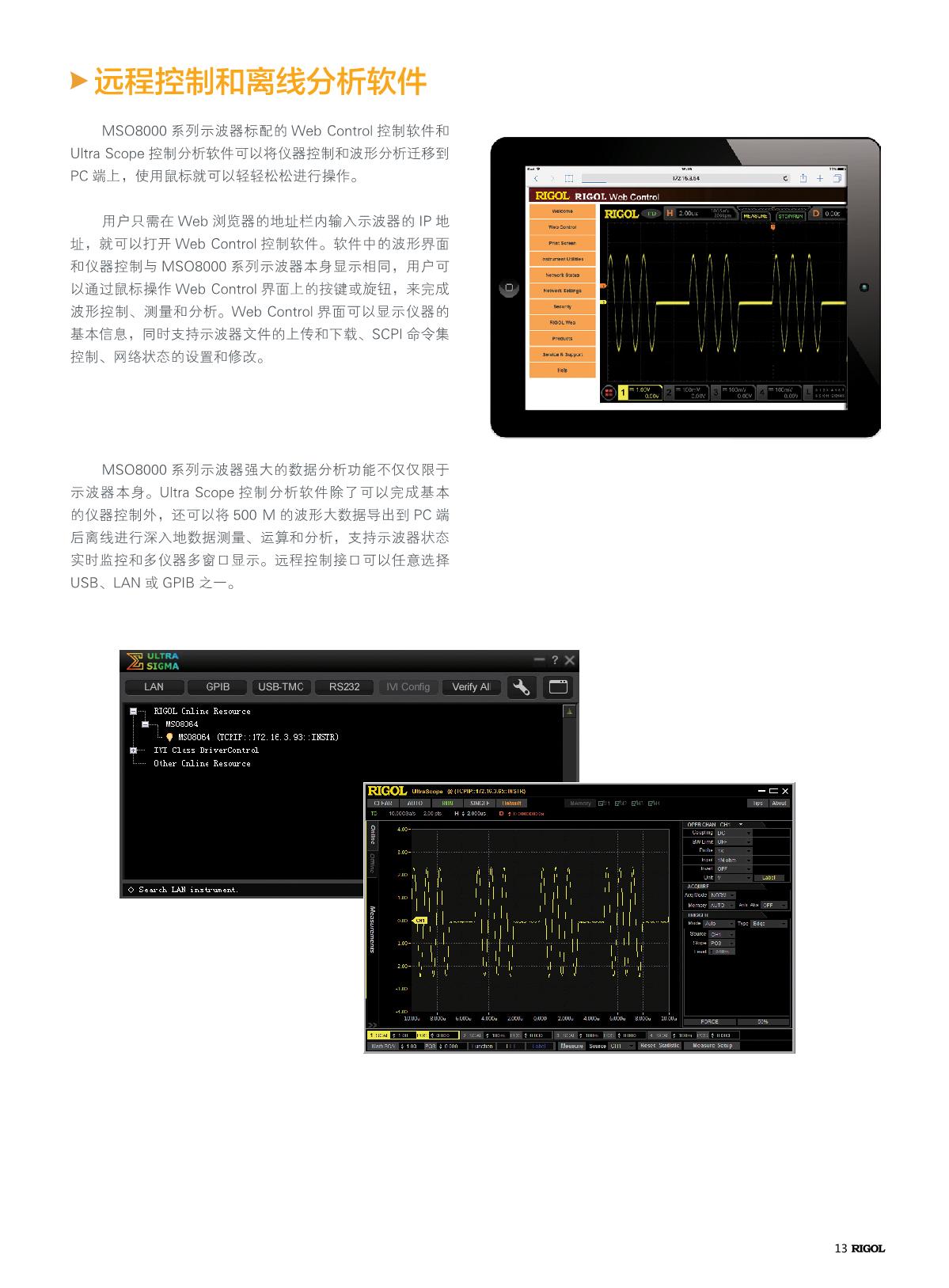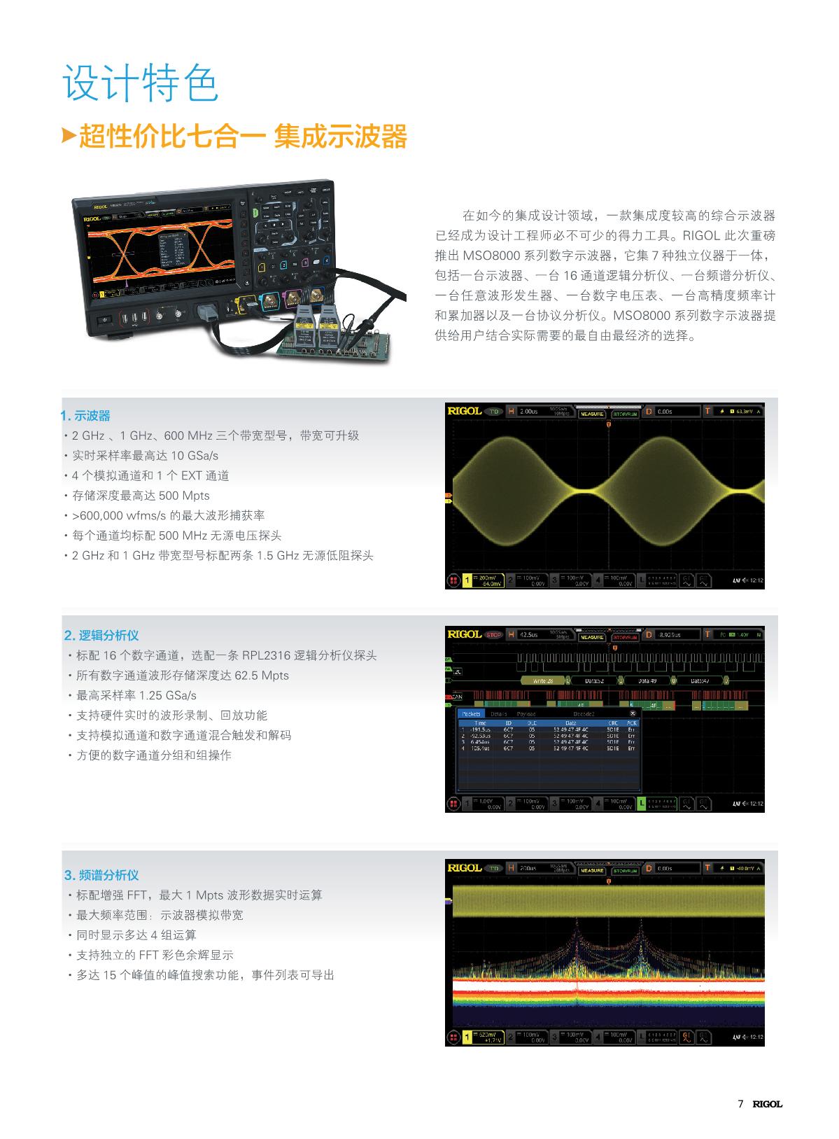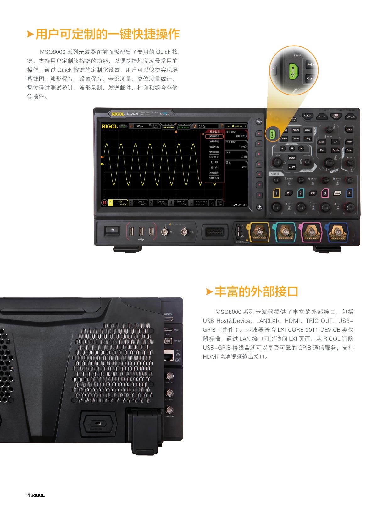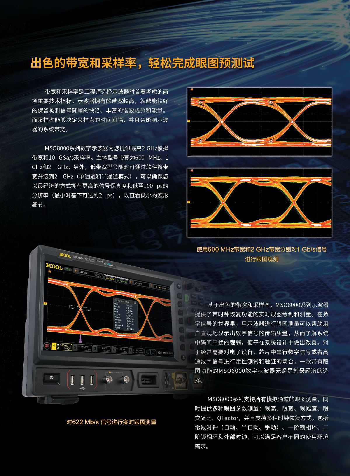 MSO8000系列數(shù)字示波器是基于RIGOL自主知識(shí)產(chǎn)權(quán)的ASIC芯片和UltraVisionII技術(shù)平臺(tái)的中高端混合信號(hào)數(shù)字示波器。示波器模擬通道帶寬高達(dá)2 GHz,集7種儀器于一身,具有500 Mpts超大存儲(chǔ)深度、良好的波形顯示效果、優(yōu)異的波形捕獲率和強(qiáng)大的數(shù)據(jù)分析功能,多項(xiàng)指標(biāo)均達(dá)業(yè)界一流水平,并且支持實(shí)時(shí)眼圖測(cè)量和抖動(dòng)分析,是業(yè)內(nèi)最具性價(jià)比優(yōu)勢(shì)的2 GHz混合信號(hào)數(shù)字示波器。